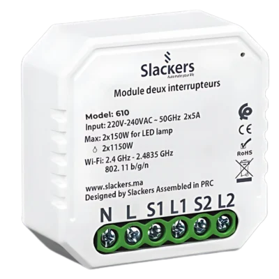 - Contrôle à distance avec l’App Slackers (IOS, ou Android)
